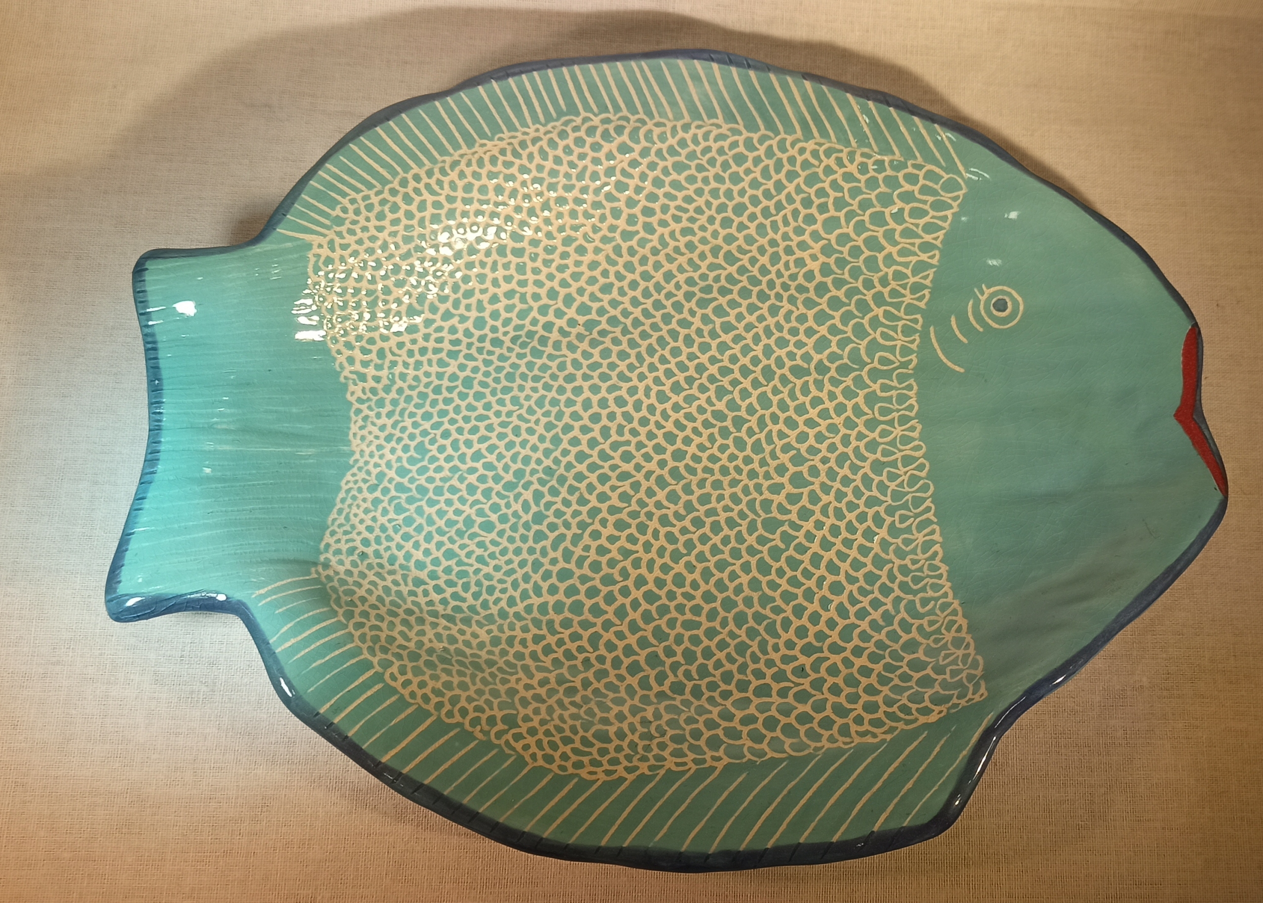 Çömlek tornasında, elde yapılmıştır.Tektir..Deseni elde sigrafitto tekniğiyle kazınarak yapılmıştır..Bir Macik Art Studio yapımıdır.Gıda kullanımına uygundur.Bulaşık makinasında yıkanabilir.