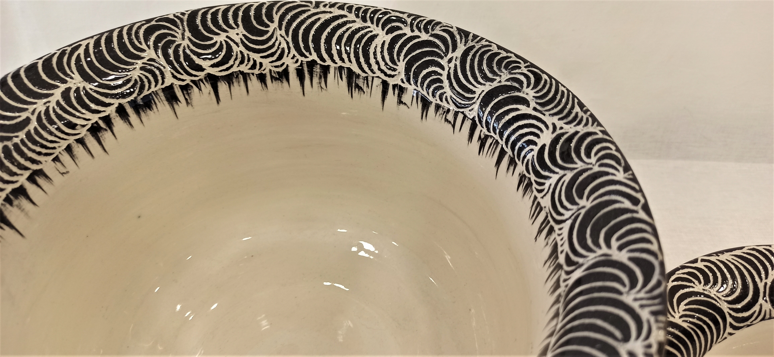 Çömlek tornasında, elde yapılmıştır.Tektir..Desenler, orjinal Macik deseni olup, Sigrafitto Tekniği ile kazınarak oluşturulmuştur.Bir Macik Art Studio yapımıdır.Gıda kullanımına uygundur.Bulaşık makinasında yıkanabilir.